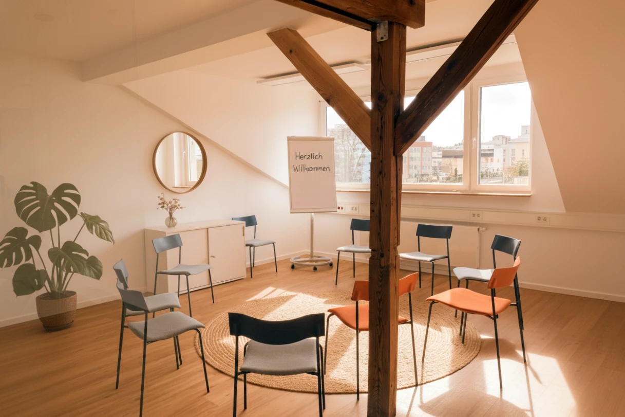 In ruhiger Lage in Frankfurt-Sachsenhausen empfängt Sie unsere Tagesklinik in hellen, modern gestalteten Räumen. Klare Formen, warme Farben und liebevolle Details schaffen ein Umfeld, das Ruhe, Sicherheit und Vertrauen vermittelt.